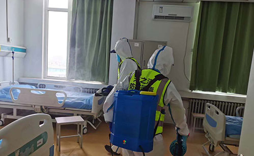 噴霧技術:掛流狀態; 1、橫向噴灑幅度為75 cm; 2、左右幅度間應有5 cm的重疊; 3、自上向下噴灑; 4、首先自上向下噴灑,結束一個噴灌噴 灑幅度 后,順時針橫移,開始下一個幅度噴灑; 5、保持噴嘴距離墻面45 cm; 6、開始噴灑時首先向前傾斜,當噴嘴向下噴灑時,身體向后傾斜; 7、自時口順時針操作,直至房間處理完畢; 8、對人體接觸較多的柜臺、桌椅、門把手、水龍頭等可用0.2%-0.5%過氧乙酸溶液或有效氯為500mg/L-1000mg/L的二氧化氯消毒劑進行噴灑或擦拭消毒,作用時間15-30分鐘。
